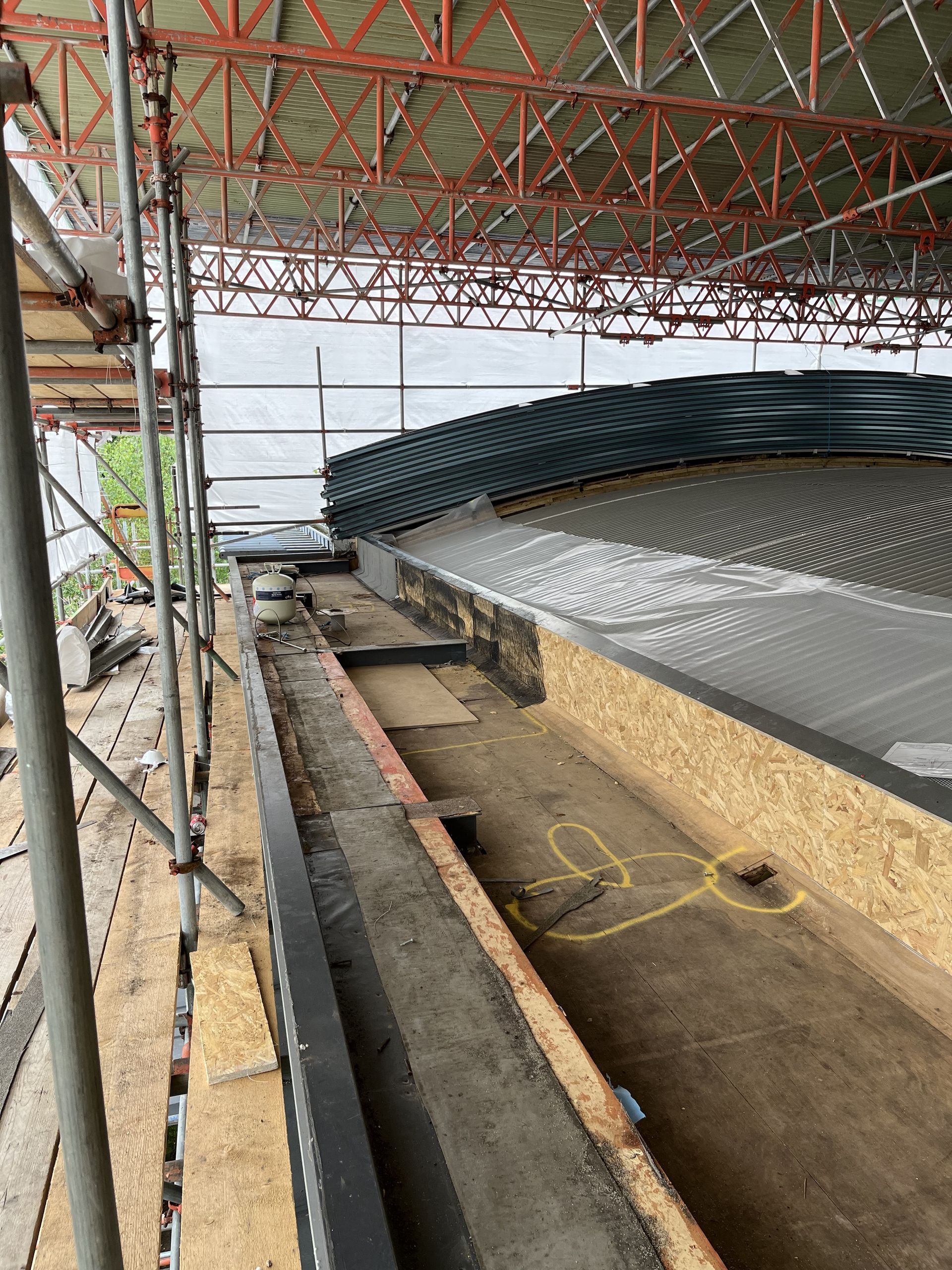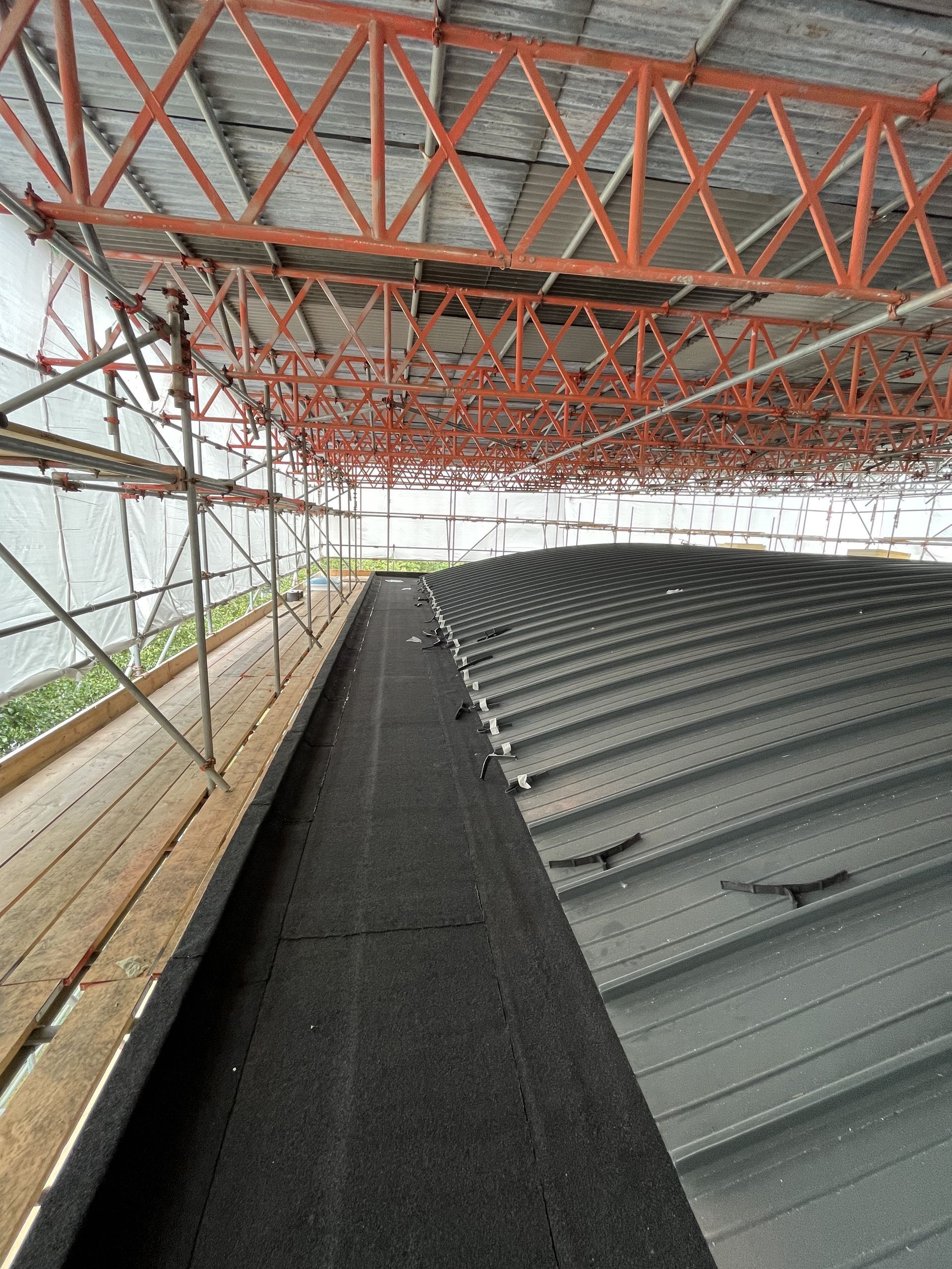 Our team undertook the intricate task of removing the existing roof system, which required meticulous planning and execution. To ensure the safety of both the structure and personnel, we implemented a full scaffold enclosure around the building. This crucial step facilitated safe and efficient work conditions.